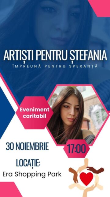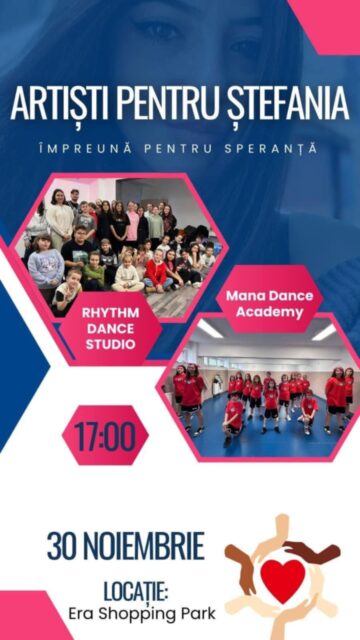 VĂ invităm să fiți solidari cu Ștefania, participând la spectacolul caritabil organizat de Mana Dance Academy în colaborare cu artiști sufletiști din Oradea, în data de 30 noiembrie 2024 de la orele 17:00, la Sala de Evenimente Era Shopping Park.